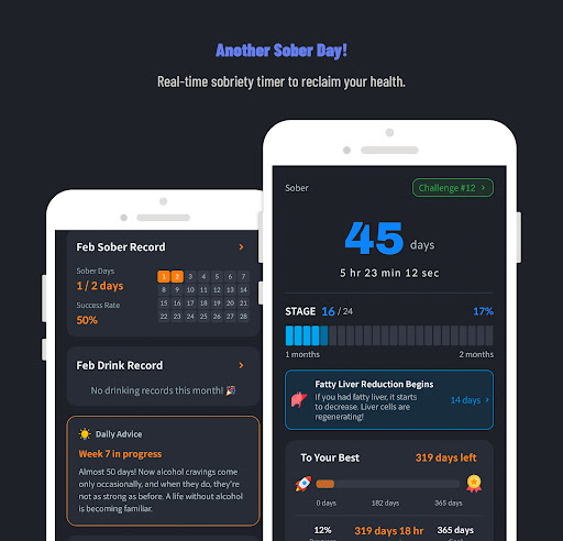 - Health Recovery Timeline: A timeline that graphically illustrates the recovery milestones users can expect as their sober days accumulate.